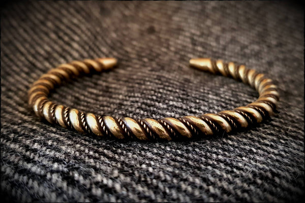 A twisted viking bracelet in bronze, authentically hand made. Finished with rounded ends and polished to a high shine.