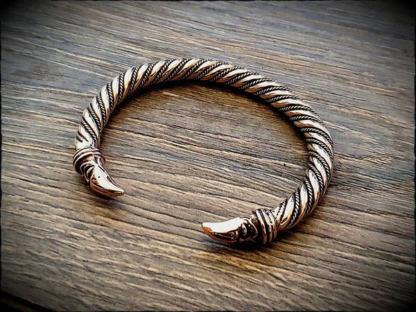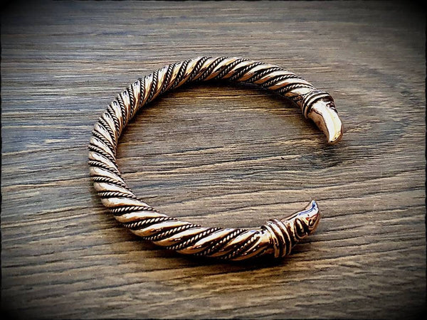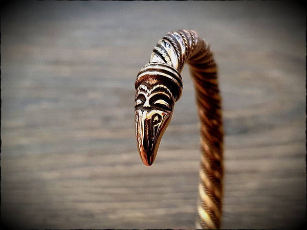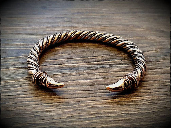 Viking Raven Head Twisted Bronze Bracelet Arm Ring