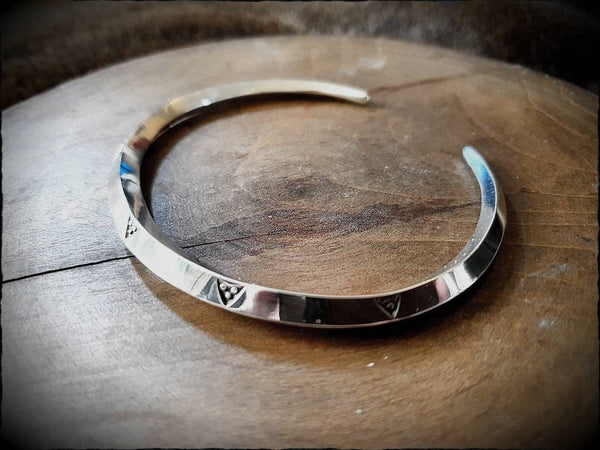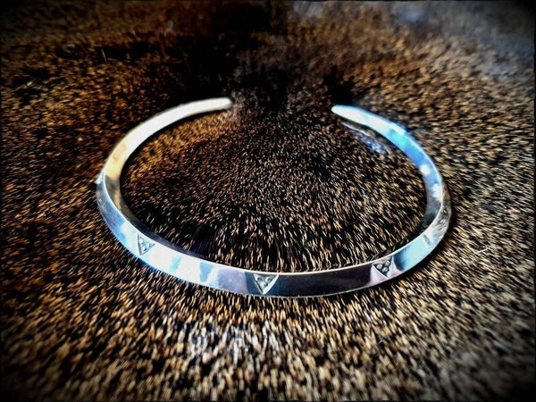 A Viking age money ring, traditionally hand forged in sterling silver with punch decoration.