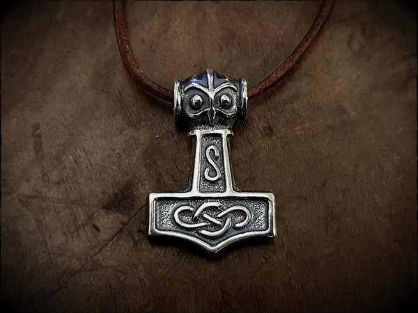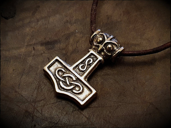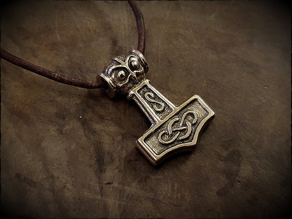 Mjolnir, Thor's hammer pendant based on a historical artifact from Erikstorp, Sweden. Hand cast in pewter, bronze or sterling silver and polished to a glowing shine.