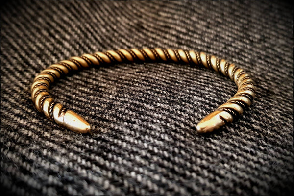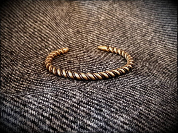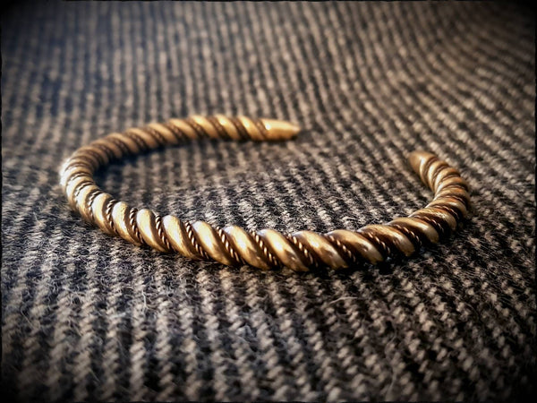 A twisted viking bracelet in bronze, authentically hand made. Finished with rounded ends and polished to a high shine.