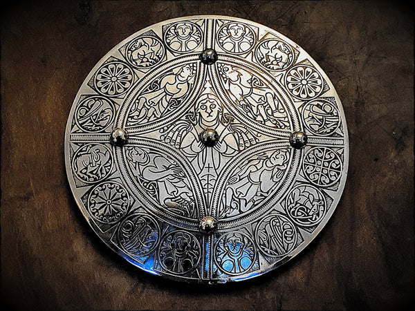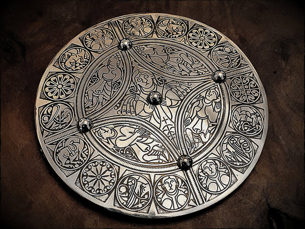 I was concerned when the brooch arrived, as it had been shipped overseas in a padded envelope that was pretty flimsy by the time it arrived, but the brooch was in perfect condition and it looks fantastic. Sticklers for accuracy may note that the design is a mirror image of the actual Fuller Brooch, strangely, (i.e. smell and touch on the left and taste and hearing on the right, as opposed to the other way round), but for me that doesn't take away from the fact that this is a beautiful item inspired by an actual Anglo-Saxon artefact. It looks just as good as it does in the pictures.