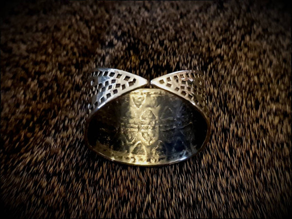 A ring based on a grave find from Birka, Sweden. Presented here in hand stamped brass.