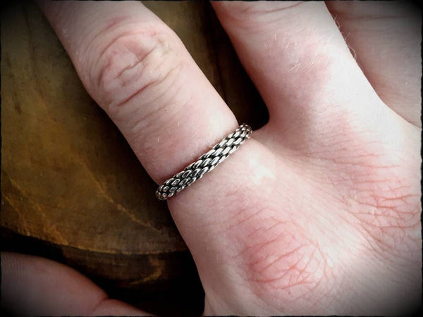 A Viking style twisted wire ring, delicately forged by hand in sterling silver and polished to a high shine.