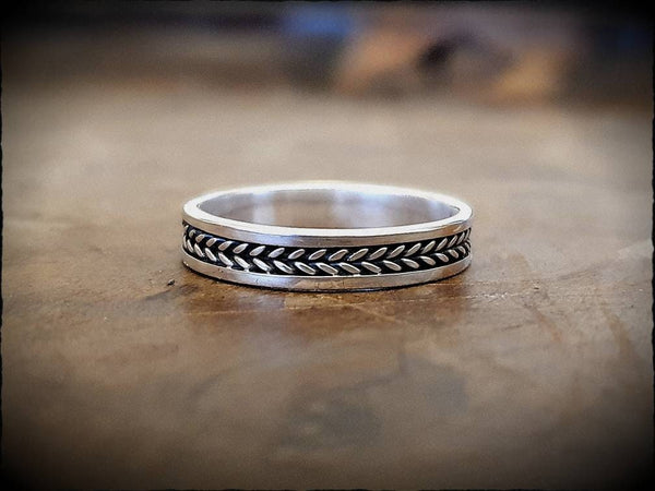 A Viking style ring hand forged in sterling silver with a double twisted pattern set into the band.