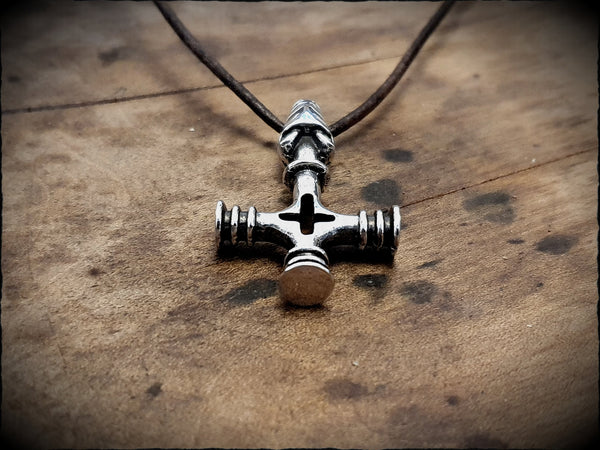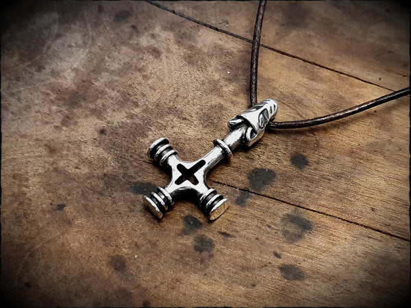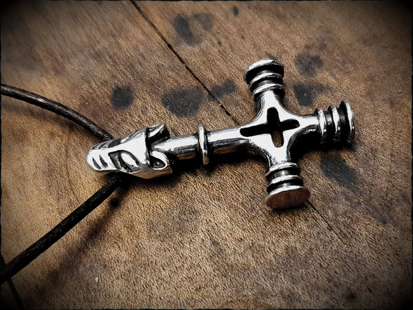 The wolf cross can be interpreted in two different ways: Either as a hammer symbolizing the norse god Thor, or as a Christian cross.