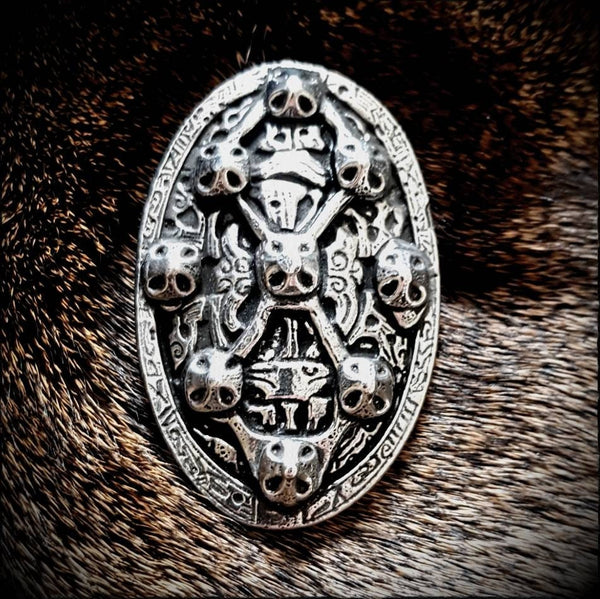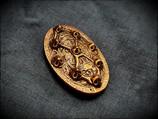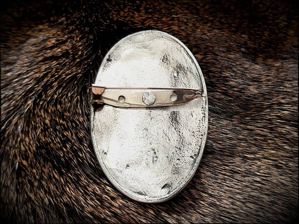 A Viking oval brooch, hand cast in lead free pewter or bronze and polished to a glowing shine. Fastened with a stainless steel pin in the pewter version, and matching bronze in the bronze version.
